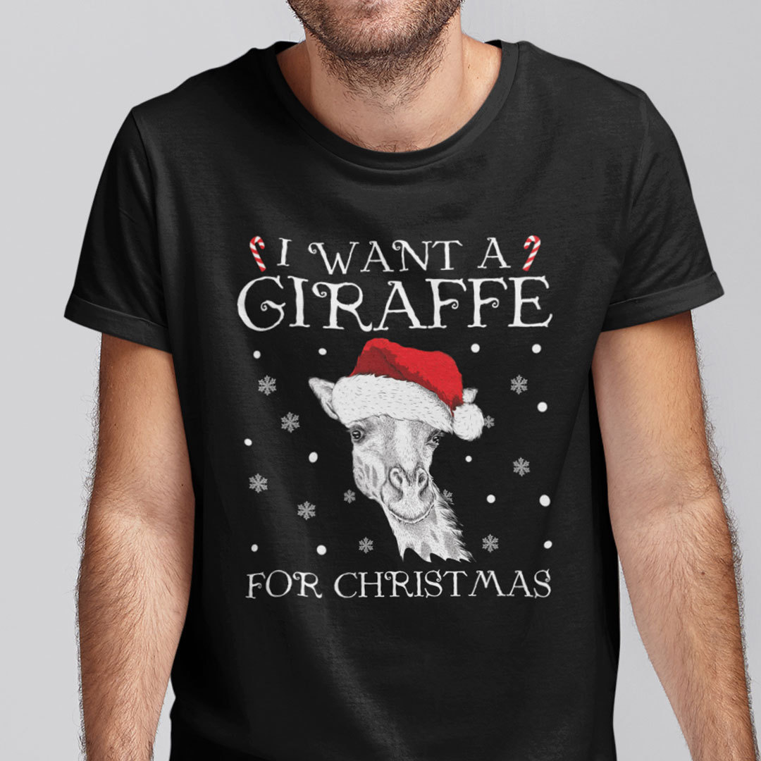 Christmas Giraffe T Shirt I Want A Giraffe For Christmas