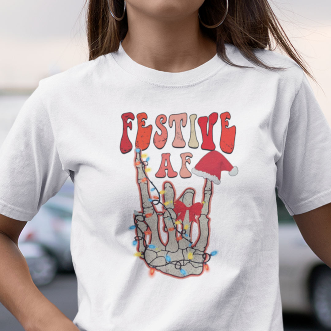 Festive Af Shirt Skeleton Middle Finger Light Tee