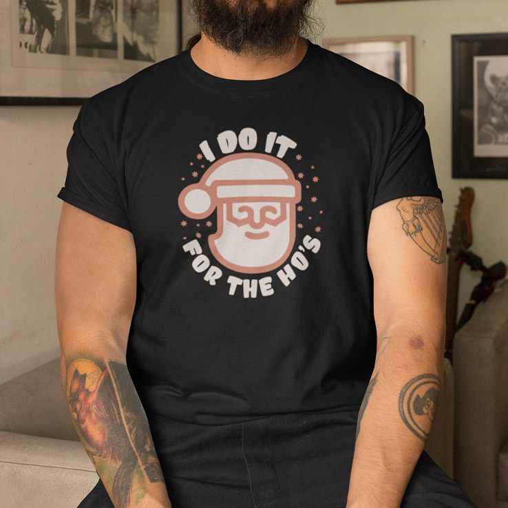 Do you love I Do it For The Ho's Santa Claus Shirt? Create a one-of-a-kind product that’s uniquely yours with our customizable options. Choose your design, colors, and style to express your personality, share a meaningful message, or craft the perfect gift.
