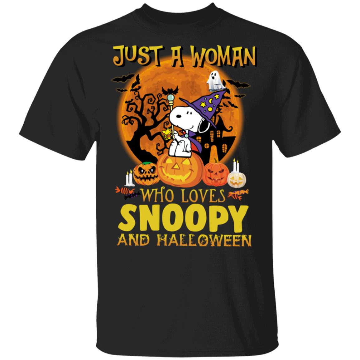 Just A Women Who Loves Snoopy And Halloween Shirt