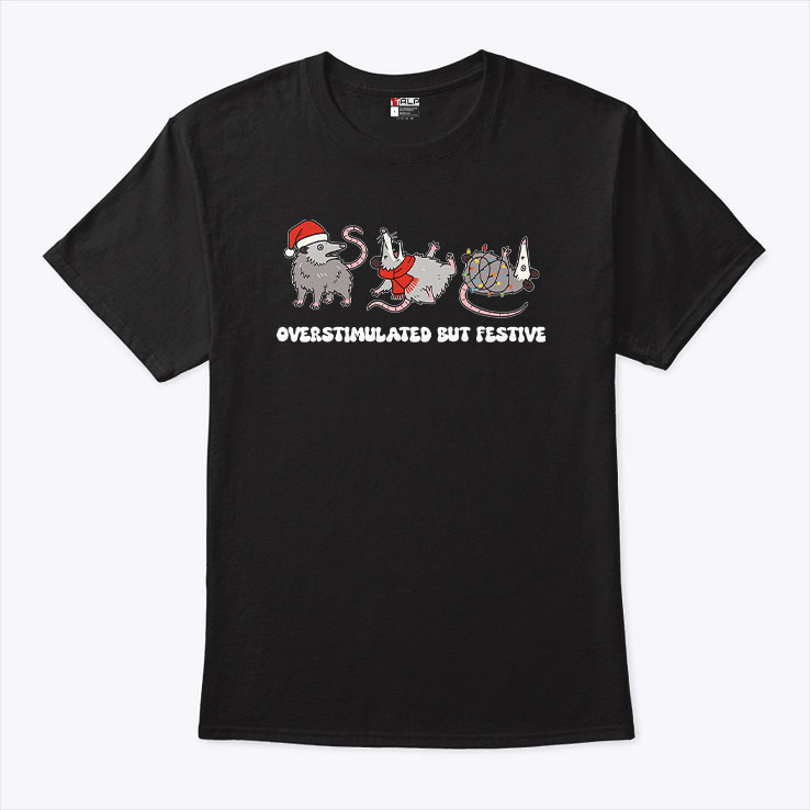 Overstimulated But Festive Possum Christmas T Shirt
