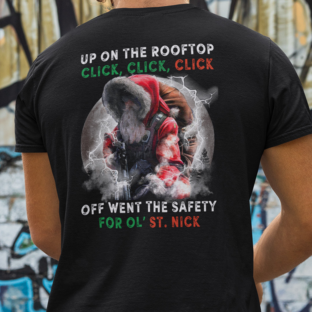 Up On The Roof Top Click Click Click Shirt Santa Christmas
